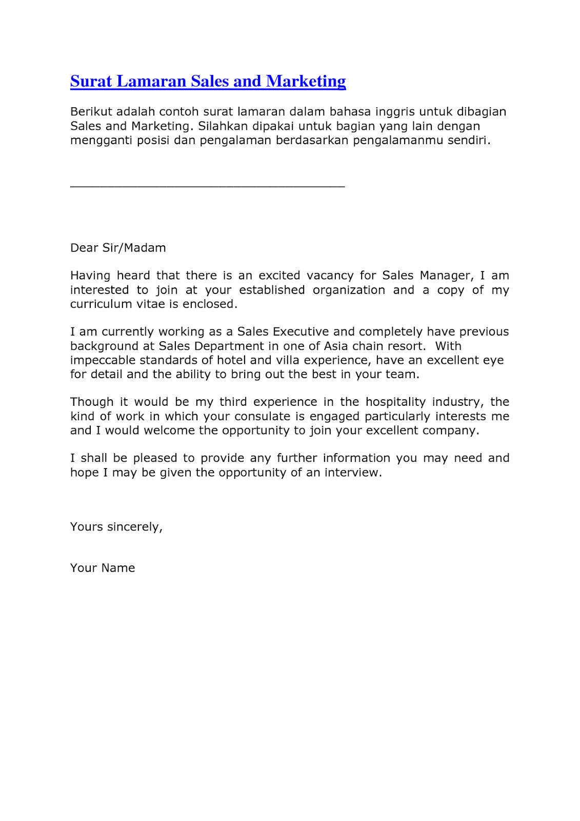 Bagi recruiter, surat lamaran dan cover letter adalah contoh cerminan kesan pertama yang paling baik dari sosok si pencari kerja — apalagi jika dibuat dalam bahasa inggris. Surat pengantar dengan pengalaman magang versi cetak Dalam penulisan cover letter pastikan cover letter anda mempunyai isi penceritaan supaya.